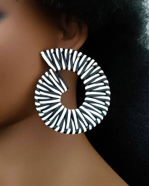 Nayra – Boucles d'Oreilles Créoles Tressées Bohèmes Noir & Blanc